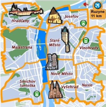La carte ci-dessous vous permettra de visualiser la position de chaque quartier de Prague.